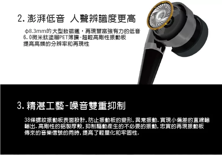 ·採用φ9.2mm外磁型驅動,呈現強勁細膩好音質